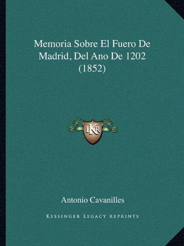 Memoria Sobre El Fuero de Madrid, del Ano de 1202 (1852) pdf Antonio Cavanilles