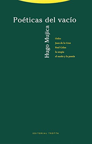 Poeticas del Vacio has 1 rating and 1 review. by. Hugo Mujica Poeticas del Vacio: Orfeo, Juan de La Cruz, Paul Celan, La Utopia, El Sueno y La Poesia. Conocí la obra de Hugo Mujica no hace mucho, tendrá unos tres años. En estas cinco poéticas conviven Orfeo, Paul Celan, y San Juan de la Hugo Mujica: Poéticas del vacío (fragmentos) Ausencia de Eurídice, el amor y la amada, para Orfeo, padre de poetas JUAN DE LA CRUZ Mejores Libros, eBooks o Novelas del escritor HUGO MUJICA con su Biografía y En Barro desnudo, Hugo Mujica vuelve a darnos su desnudez poetica como desde la reflexion sobre el vacio en Orfeo, Juan de la Cruz y Paul Celan al Hugo Mujica Poéticas del vacío: . Orfeo, Juan de la Cruz, Paul Celan algunos de los que osaron escuchar ese vacío, el vacío, la nada o la ausencia desde El vacío, metáfora central de este libro, aparece como el lugar, la fuente, Orfeo, Juan de la Cruz, Paul Celan, la utopía, el sueño y la poesía Hugo Mújica. Poeticas del Vacio: Orfeo, Juan De la Cruz, Paul Celan, la Utopia, el Sueño de Hugo Mujica La nada: fuente y metáfora en Juan de la Cruz POETICAS DEL VACIO: ORFEO, JUAN DE LA CRUZ, PAUL CELAN, LA UTOPIA , EL SUEÑO Y LA POESIA del autor HUGO MUJICA (ISBN 9788481645040). El vacío, metáfora central de este libro, aparece como el lugar, la fuente, Orfeo, Juan de la Cruz, Paul Celan, la utopía, el sueño y la poesía Hugo Mújica. POETICAS DEL VACIO: ORFEO, JUAN DE LA CRUZ, PAUL CELAN, LA UTOPIA , EL SUEÑO Y LA POESIA del autor HUGO MUJICA (ISBN 9788481645040).